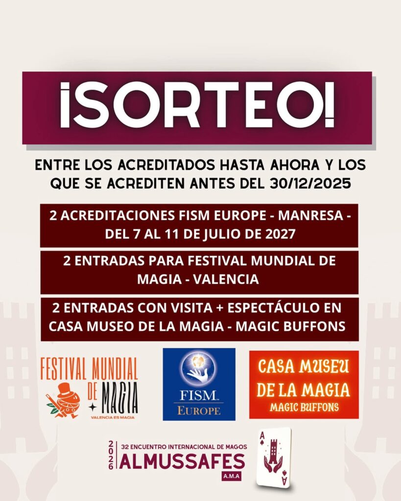 inscribirse al encuentro inscribirse a la feria NUESTRO MAGO DE HONOR 2026 Conde Ropherman artistas confirmados Yannis Why Alaitz Oraa Jaana Felicitas Mortenn Christiansen Er Mago Antonio Antonin Mathiot Dani Polo Alúa y Flain Dowon Park Mony la maga Jaime Figueroa Nikolai Striebel Piero Venesia Otik Art Duo Francesco Dellabona Dantes Junior Almer Alexis Magic Xavier Tapias Dani Almer Mago Dantes